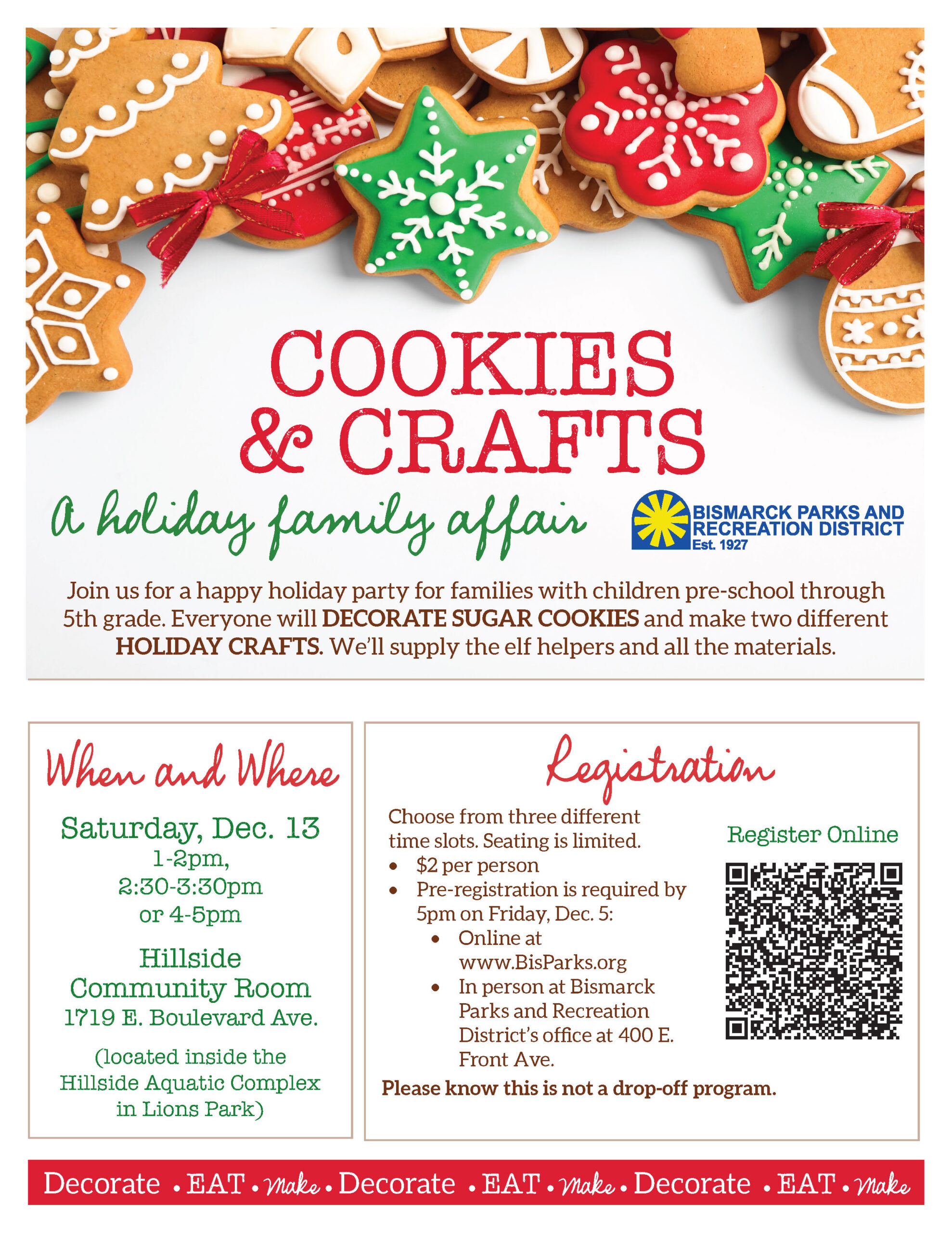 sat13dec1:00 pm5:00 pmCookies and Crafts1:00 pm - 5:00 pm(GMT-06:00) 1719 E. Boulevard Ave.