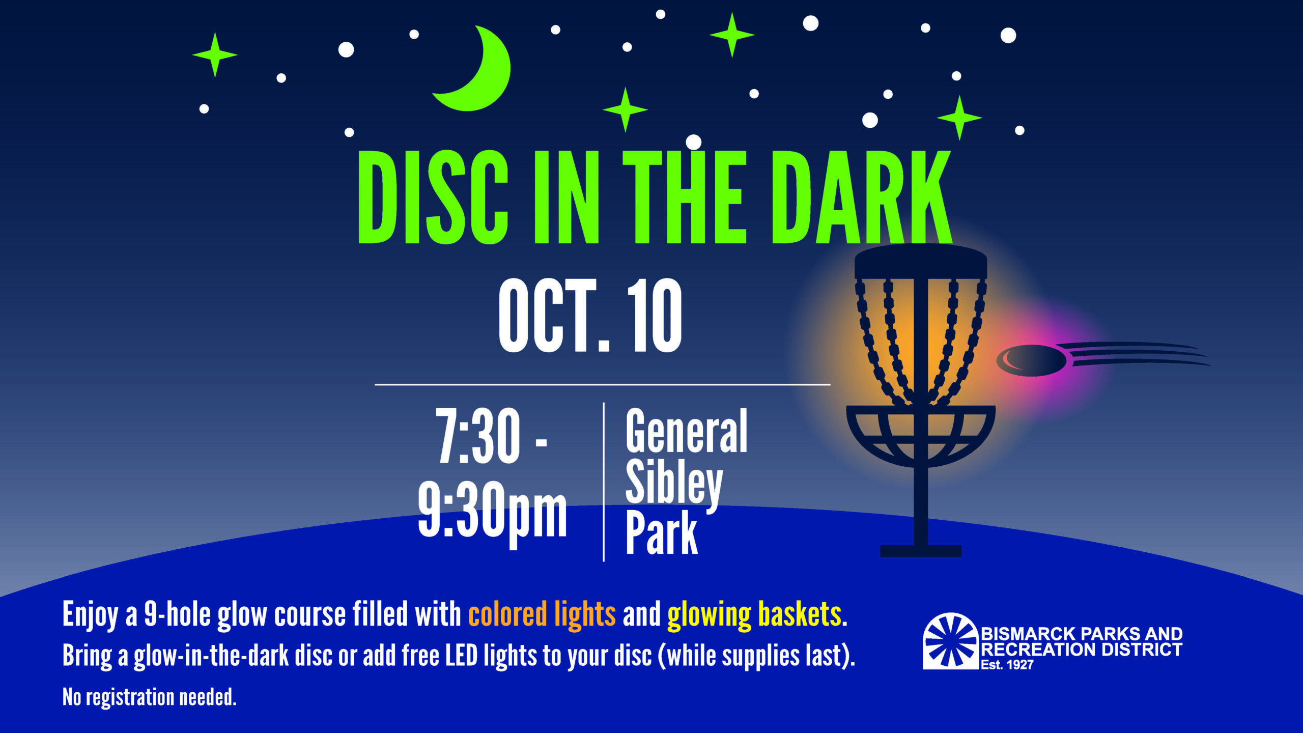 Friday, Sept. 12 Friday, Oct. 10 7:30-9:30pm General Sibley Park and Campground, 5001 S. Washington St. Enjoy a 9-hole glow course filled with colored lights