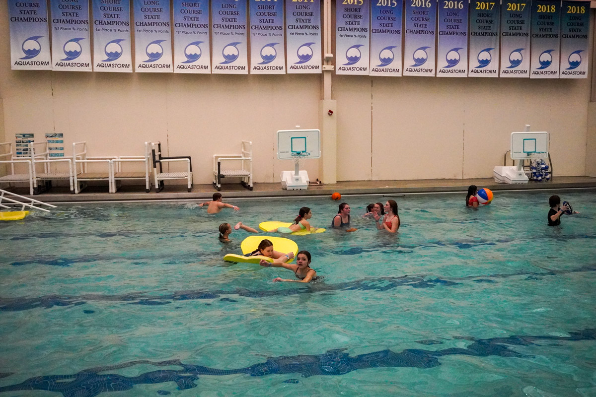 Parents/guardians can bring their toddlers to special swim time in the program pool and use baby floats, U.S. Coast Guard approved life jackets, and small pool toys (no water wings). Teaching platforms and swimming lesson toys are available.