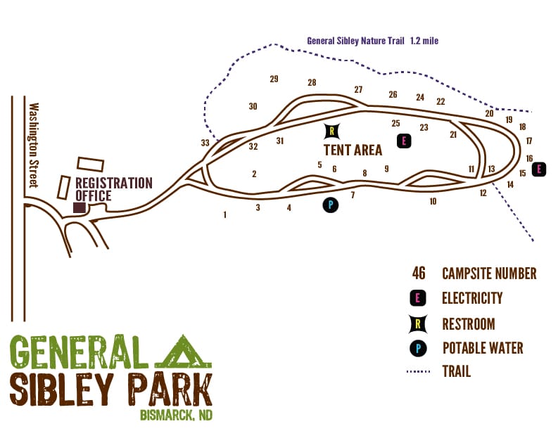 Each tent campsite has a picnic table and firepit. Parking is permitted on the grass at the site.